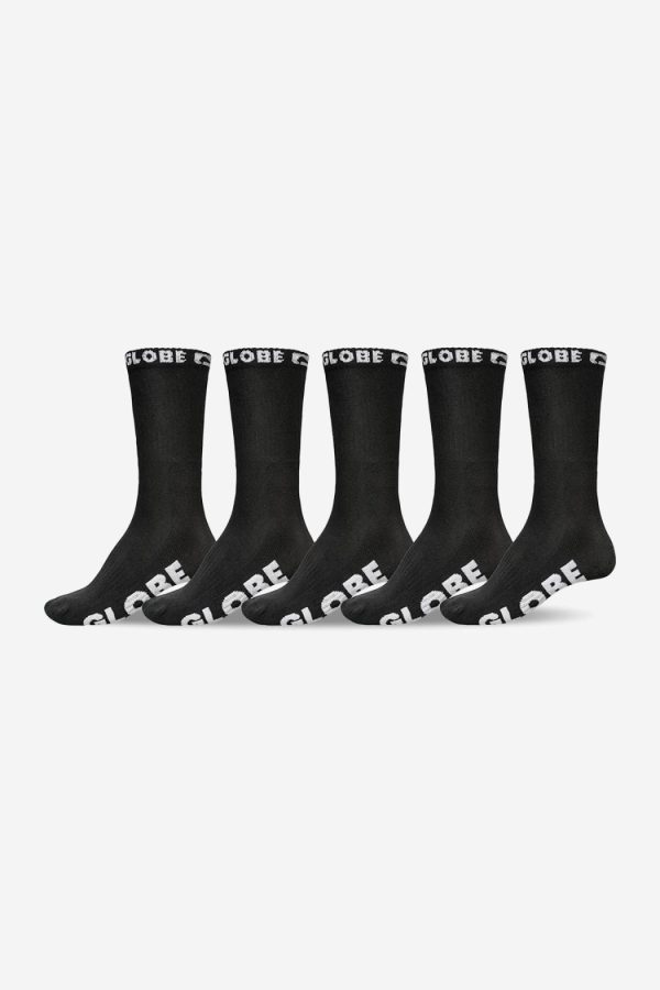 Socks that last, on and off the board. The Globe Blackout Sock 5 Pack is a combed cotton men’s sock. The Globe Blackout Sock 5 Pack contains 75% cotton, 22% nylon, 3% elastane.